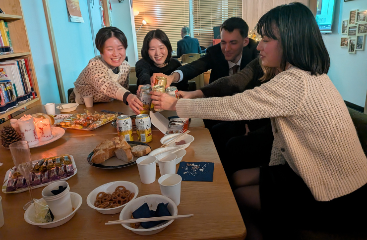 乾杯!日本の方々は、本当に楽しみ方を知っていますね。私にとって、これこそがまさに『大阪』という感じです。ただ一緒にいるだけで楽しくて、みんなで笑い合い、陽気でハッピーな雰囲気。この写真は、DZGOが単に語学を学ぶ場所であるだけでなく、人との繋がりや楽しさを大切にしていることがよく伝わる一枚だと思います。